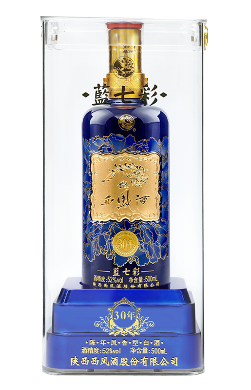 藍(lán)七彩30年,西鳳酒主導(dǎo)的重點(diǎn)大單品之一,是奠定次高端白酒市場(chǎng)的形象產(chǎn)品。
